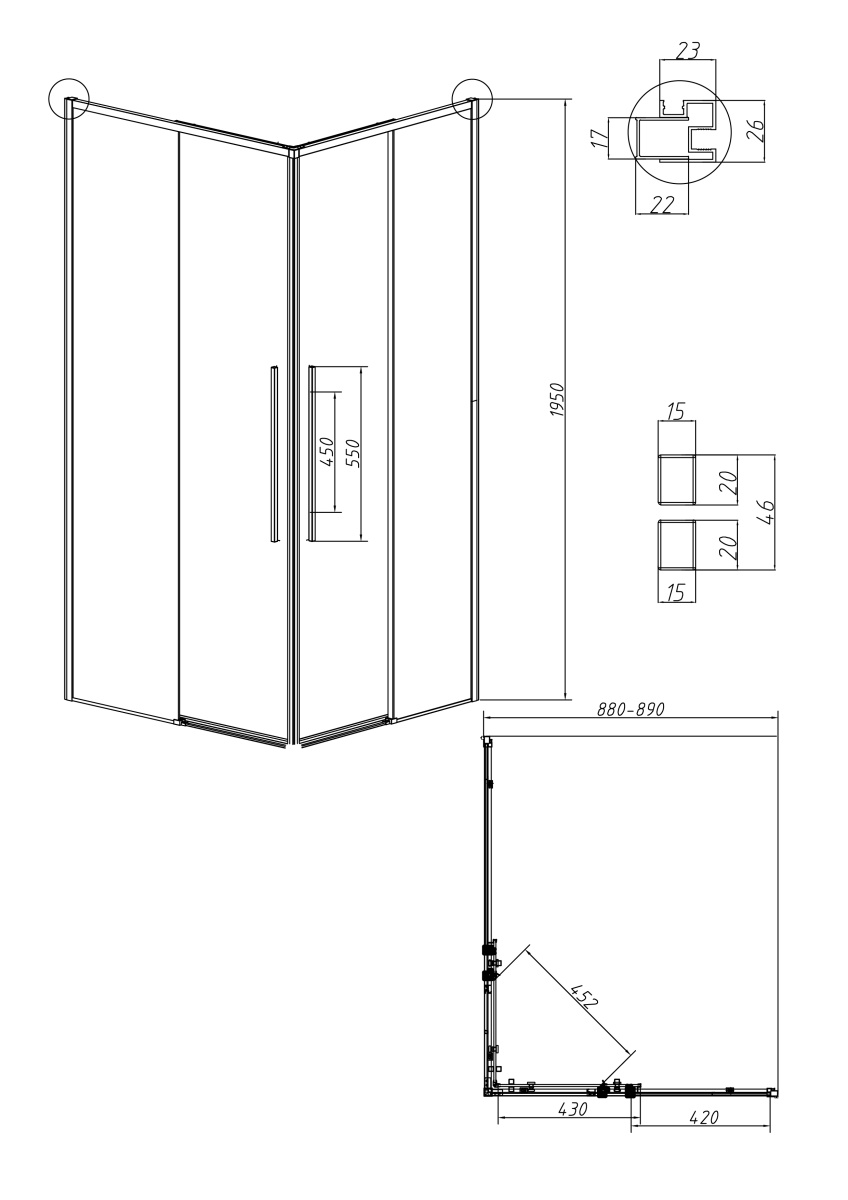 —Душевая дверь Grossman Galaxy 1/2.K33.01.90.32.00 90х195 стекло прозрачное профиль золото