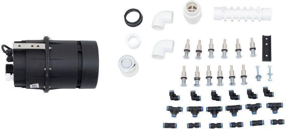 Аэромассаж Aquanet (12 форсунок) с компрессором. Диаметр форсунок 19 мм, предназначена для размещения в донной части ванны, включение/выключение отдельной кнопкой. Обеспечивает активную подачу воздуха снизу вверх. Подъемная сила воздуха направляемая под давление аэропомпой, равномерно распределяется в воде и обеспечивает мягкий массаж всего тела. Форсунки располагаются зеркально, относительно центральной линии ванны, по 6 форсунок с каждой стороны, но в зависимости от формы ванны, можно выбрать другое размещение. Динамичное движение воды, смешанной с воздухом, создает благоприятные условия для расслабления и восстановления тонуса мышц. Возможна установка без гидромассажа, но две системы вкупе принципиально меняют возможности получения качественных водных процедур.