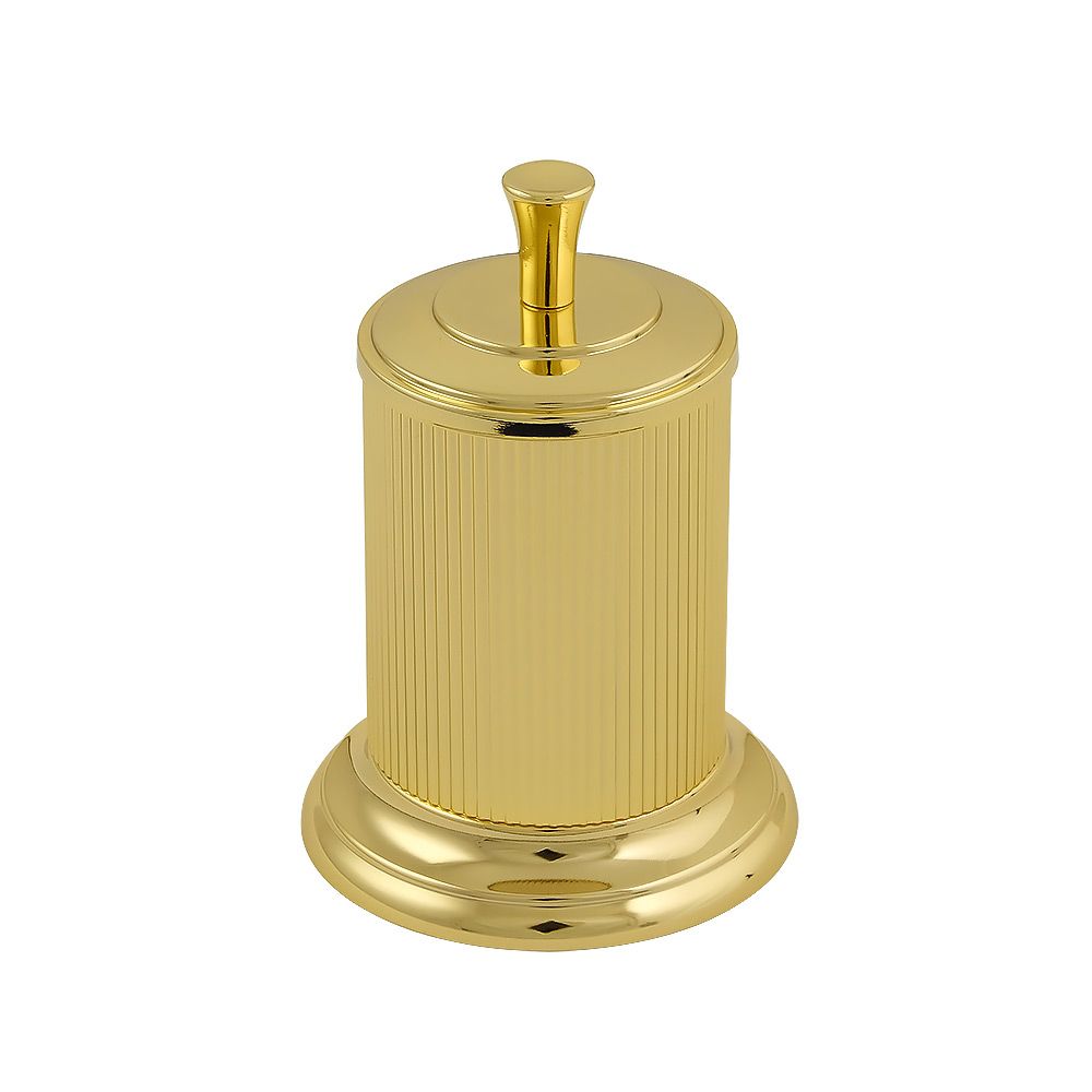 Баночка настольная серии FORTUNA бренда MIGLIORE предназначена для хранения ватных дисков, но в ней также можно хранить любые различные предметы и использовать ее не только в ванной комнате.  Изделие выполнено из высококачественной латуни и имеет гальваническое покрытие золотом 24 карата. Внимание: золотое покрытие очень деликатное и для ухода рекомендуется использовать чистящее средство бренда MIGLIORE для смесителей и аксессуаров с деликатными покрытиями бронза, золото, медь и протирать мягкой ветошью.