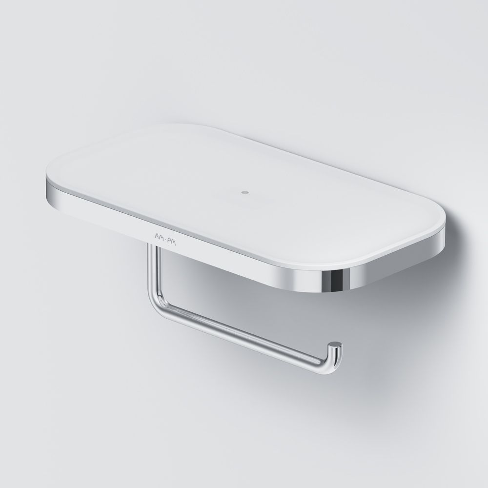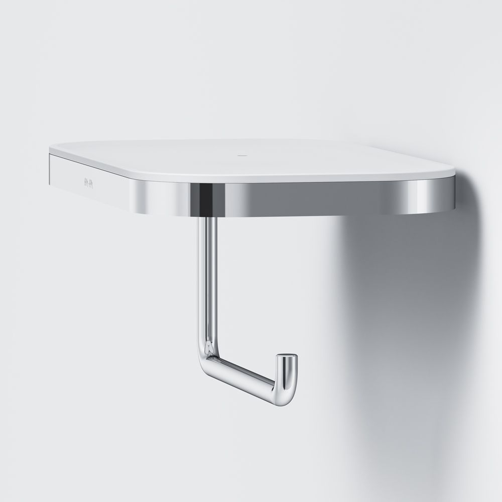 Обтекаемая форма продукта внешне напоминает современные смартфоны и повторяет линии других продуктов коллекции. Держатель оснащен удобной полочкой которую можно использовать для хранения необходимых мелочей.