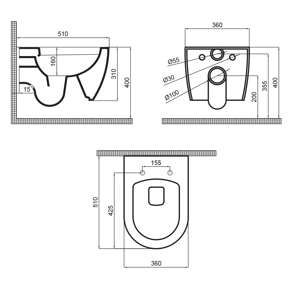 Чаша унитаза подвесная Bettoserb Stream Line SET40006476R цвет белый без сиденья безободковая смыв торнадо