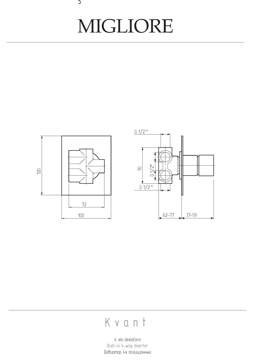 —Девиатор поворотный Migliore KVANT 18126 встраиваемый в стену хром