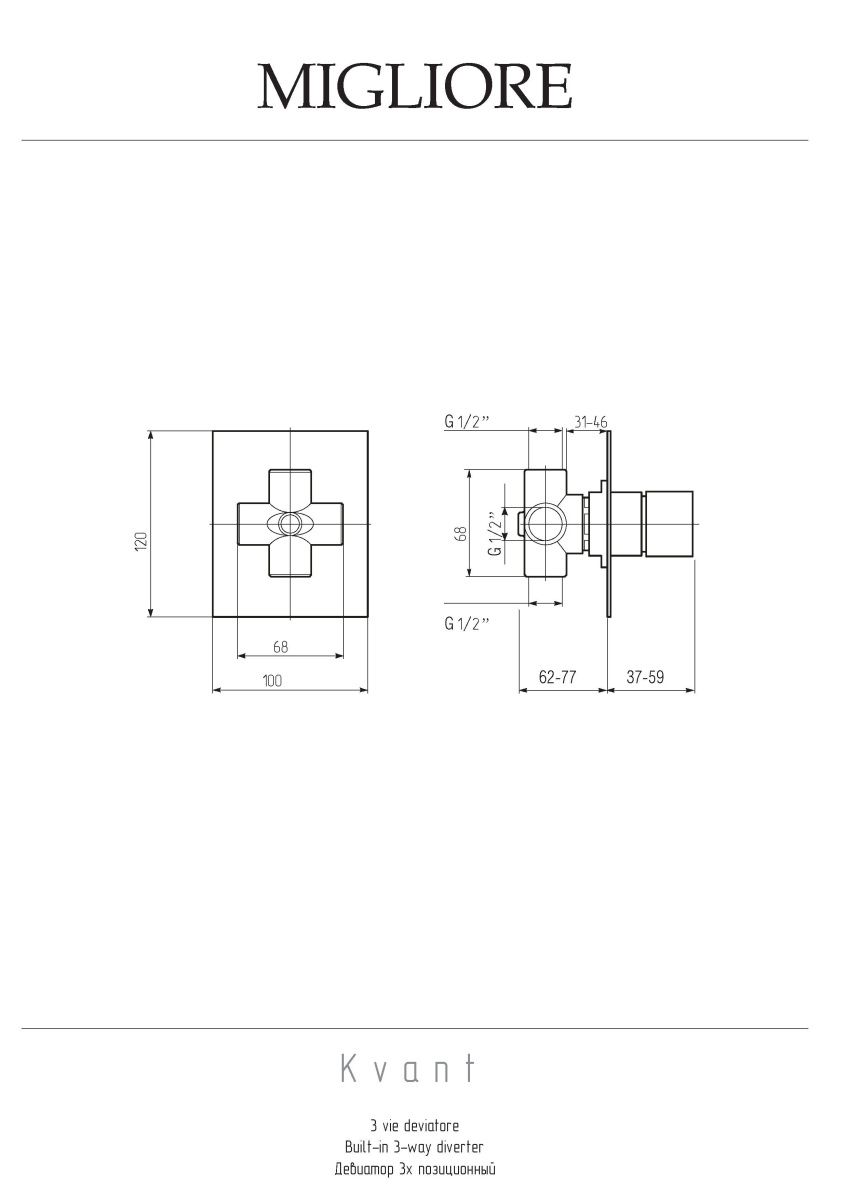 —Девиатор поворотный Migliore KVANT 18127 встраиваемый в стену хром