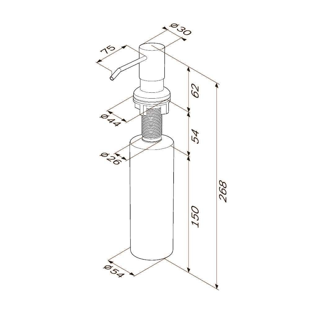 Встраиваемые универсальные диспенсеры помогут поддерживать красивый внешний вид кухни или ванной комнаты. Это незаменимый аксессуар  который выполняет несколько функций. Во-первых  экономия расхода моющего средства или жидкого мыла. Во-вторых  избавляет от визуального шума. Диспенсеры произведены из нержавеющей стали  устойчивой к коррозии. Плавный ход механизма помпы гарантирует приятное взаимодействие с продуктом. Длина носика составляет 75мм  поэтому будет удобна для использования на любом типе и размере раковины.