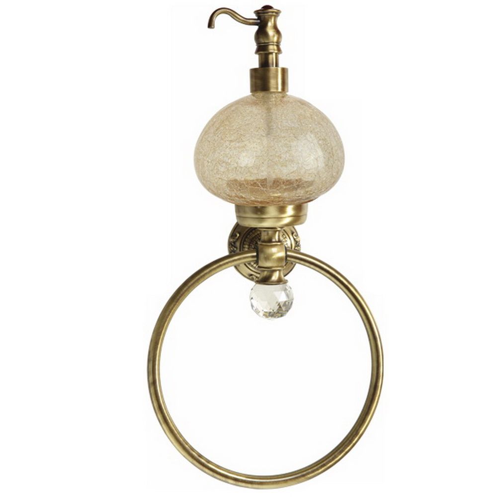 Дозатор настенный с кольцом коллекции CRISTALIA бренда MIGLIORE -один из самых необходимых аксессуаров для ванной комнаты. Дозатор дополнен кольцом для полотенец, и его удобно разместить рядом с биде. Стекло дозатора изготовлено вручную с добавлением фольги из золота, которая, растворяясь в стекле, образует богатый и красивый декор. Аксессуар украшен кристаллом Сваровски. При необходимости дозатор можно вынуть из посадочного места, чтобы помыть