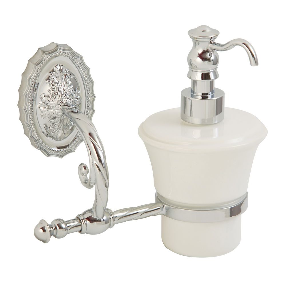 Дозатор жидкого мыла настенный с керамической колбой коллекции EDERA бренда MIGLIORE  - это многофункциональный аксессуар. Вы можете повесить его над раковиной, в душевой кабине или на кухне. Высококачественная белая керамика легко моется, а нажимной механизм имеет эргономичный дизайн. Между керамикой и латунным кольцом имеется уплотнительное пластиковое кольцо, которое надежно удерживает колбу дозатора. Благодаря витым элементам и необычной овальной розетке аксессуары коллекции EDERA будут смотреться элегантно и оригинально в классическом интерьере.