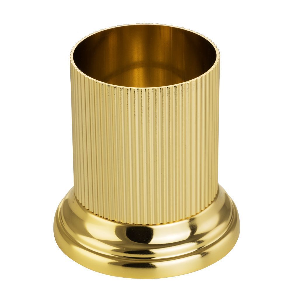 Держатель настольный средний для дозатора/стакана серии FORTUNA бренда MIGLIORE может быть укомплектован стаканом или дозатором из прозрачного стекла или матового стекла с декором. Изделие выполнено из высококачественной латуни и имеет гальваническое покрытие золотом 24 карата. Внимание: золотое покрытие очень деликатное и для ухода рекомендуется использовать чистящее средство бренда MIGLIORE для смесителей и аксессуаров с деликатными покрытиями бронза, золото, медь и протирать мягкой ветошью.