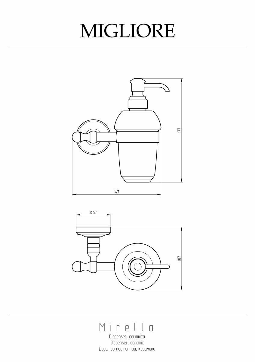 Дозатор настенный серии MIRELLA брэнда MIGLIORE — это незаменимый аксессуар в ванной комнате. Дозатор выполнен из высококачественной керамики, латунный держатель имеет гальваническое  покрытие золотом 24 карата. Внимание: золотое покрытие очень деликатное и для ухода рекомендуется использовать чистящее средство Migliore для смесителей и аксессуаров с деликатным покрытием бронза, золото и протирать мягкой ветошью.