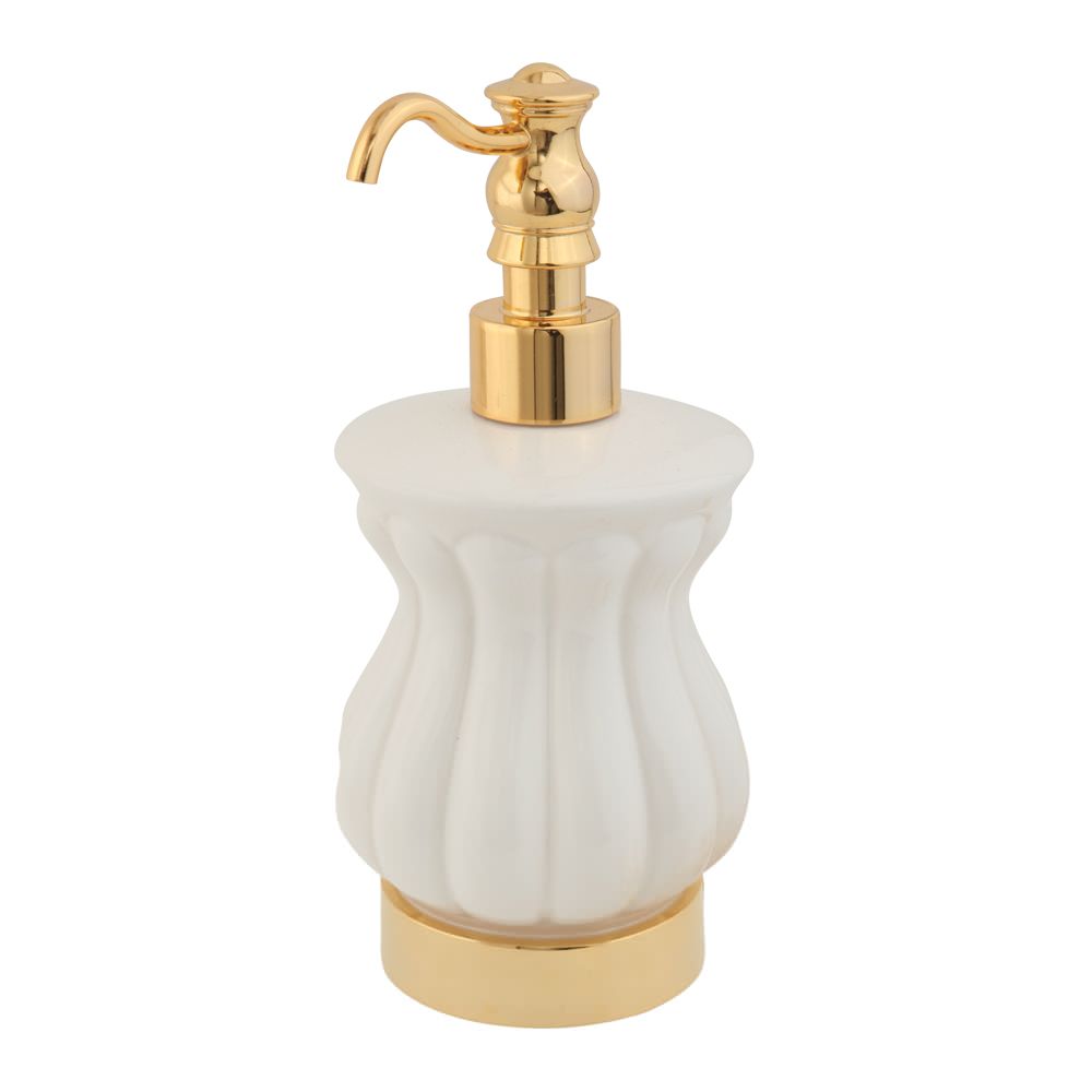 Дозатор жидкого мыла настольный с керамической колбой коллекции OLIVIA бренда MIGLIORE   - один из необходимых аксессуаров, который можно использовать в ванной комнате и на кухне для мыла или моющего средства. Высококачественная белая керамика легко моется, а нажимной механизм имеет эргономичный дизайн. Между керамикой и латунным кольцом имеется уплотнительное пластиковое кольцо, которое надежно удерживает колбу дозатора.