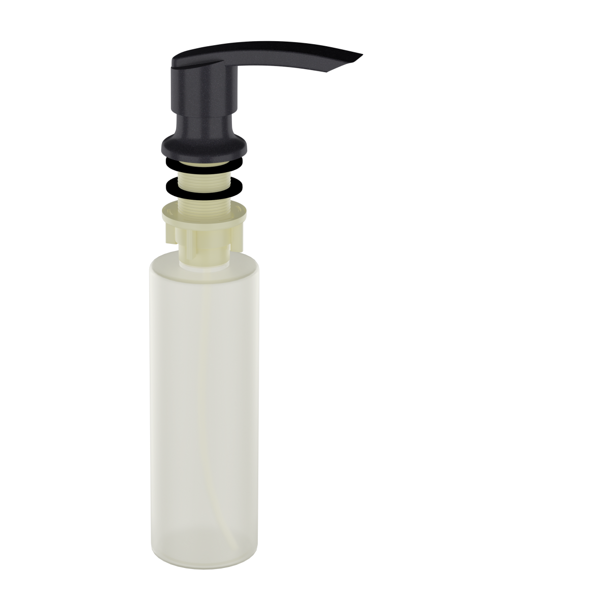 Дозатор ULGRAN Quartz UQ 02 предназначен для установки на кухонную мойку ULGRAN  или на столешницу из искусственного камня толщиной не более 40 мм. Использование дозатора освобождает мойку и столешницу от бутылочек с моющим средством, делая кухню удобной и красивой. Дозатор позволяет с помощью лёгкого нажатия получать необходимое количество жидкости для мытья посуды, при этом важно, что дозатор заполняется моющим средством сверху. Пластиковая колба объемом 330 мл прикручивается к дозатору снизу столешницы один раз и в дальнейшем не откручивается.