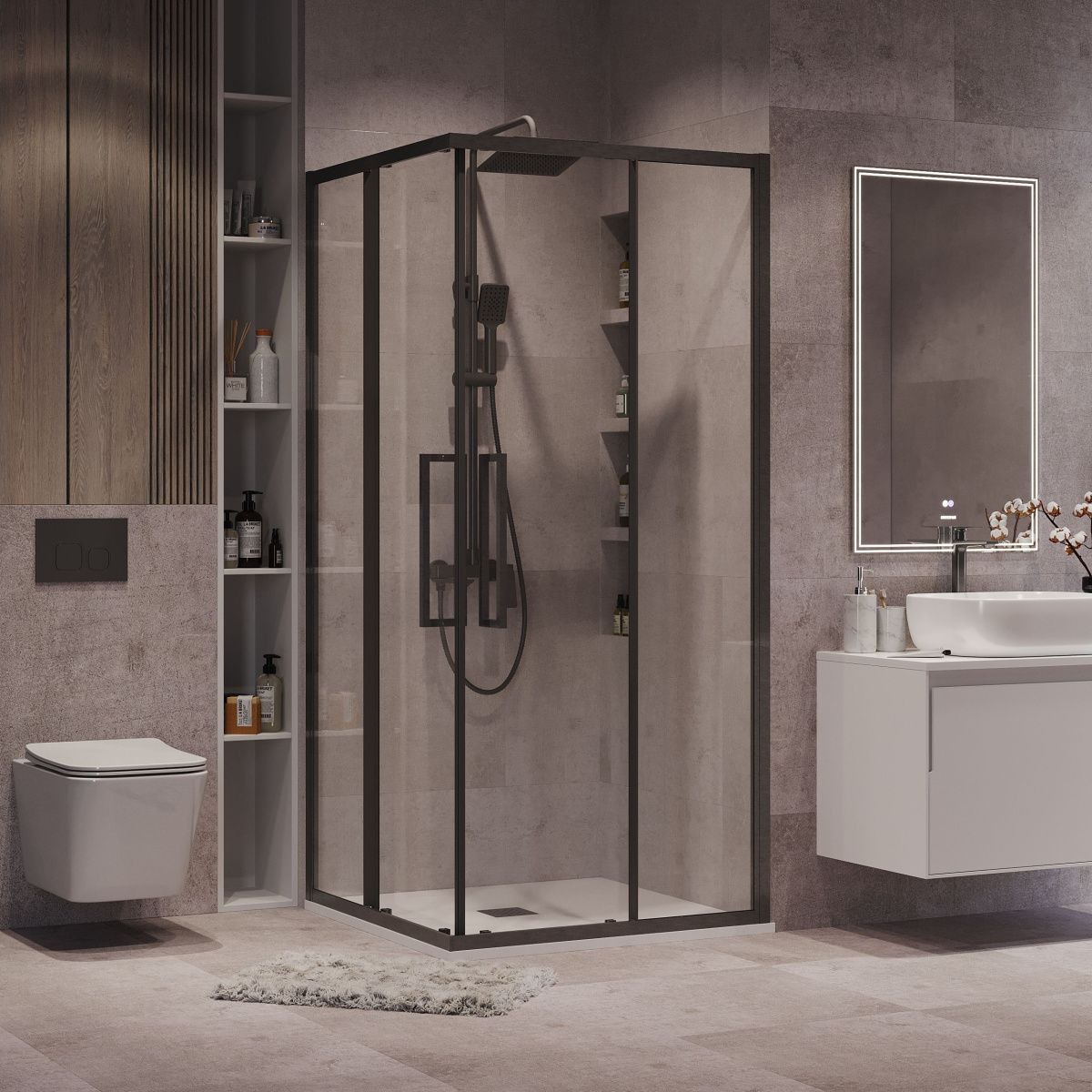 —Душевой уголок Grossman Cosmo 300.K33.02.1010.42.00 100х100 стекло прозрачное профиль графит без поддона