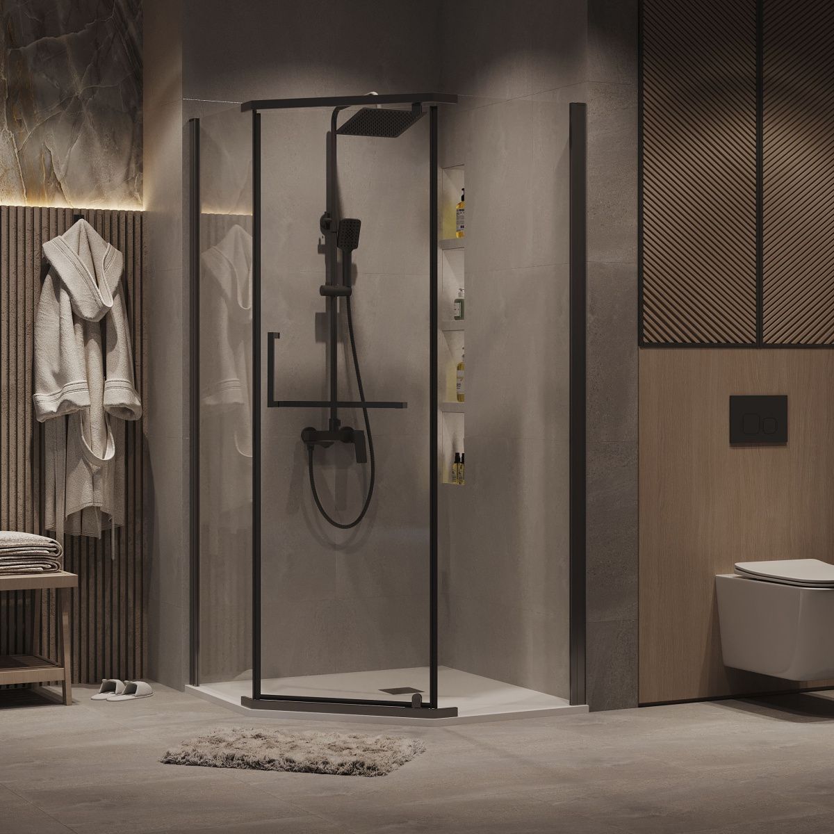 —Душевой уголок Grossman Pragma 302.K33.03.9090.42.00 90х90 стекло прозрачное профиль графит без поддона