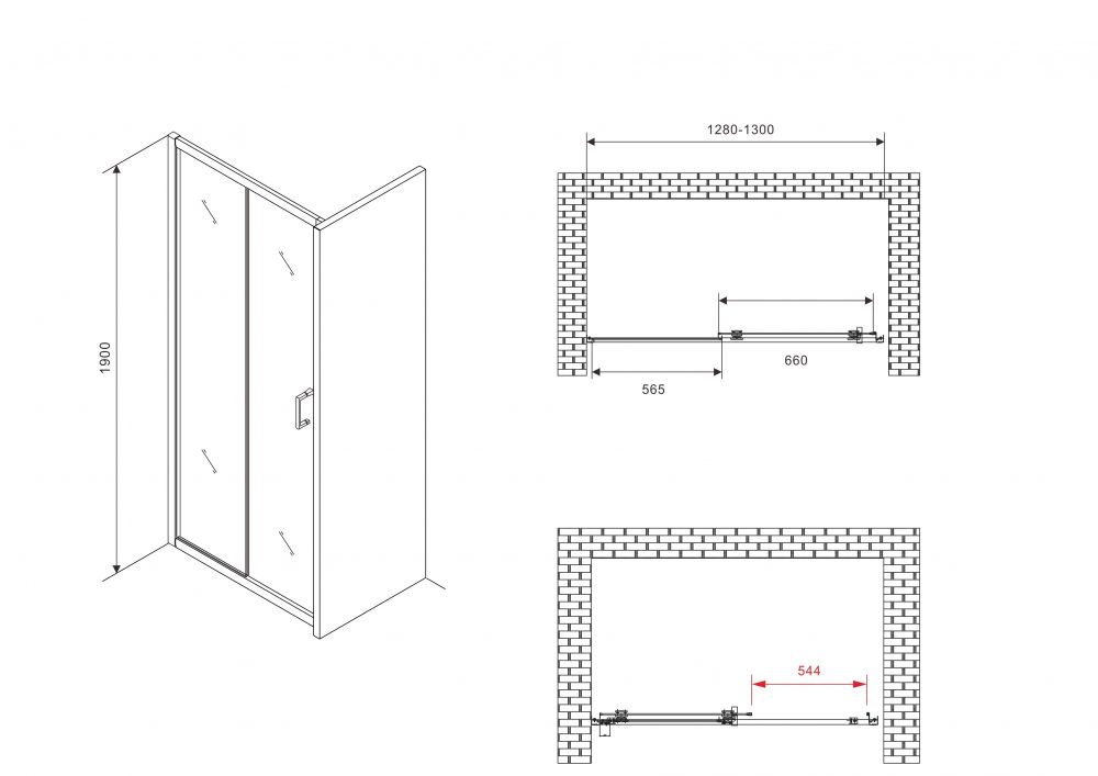 —Душевая дверь Abber Schwarzer Diamant AG30130B5 130х190 стекло прозрачное профиль черный