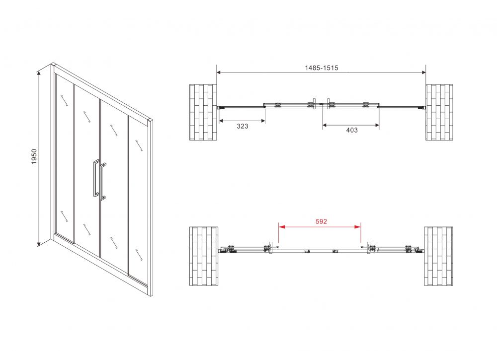 —Душевая дверь Abber Schwarzer Diamant AG33150H 150х195 стекло прозрачное профиль хром