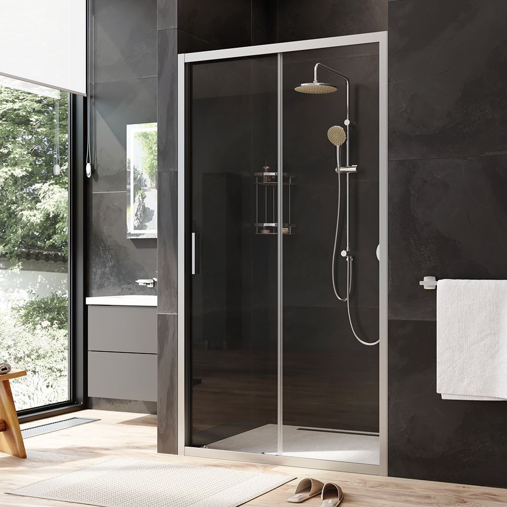 Душевая дверь отличается практичностью и функциональностью. Изделие произведено из ударопрочного закаленного стекла  которое надежно фиксируется в нержавеющий алюминиевый профиль при помощи системы скрытых креплений.