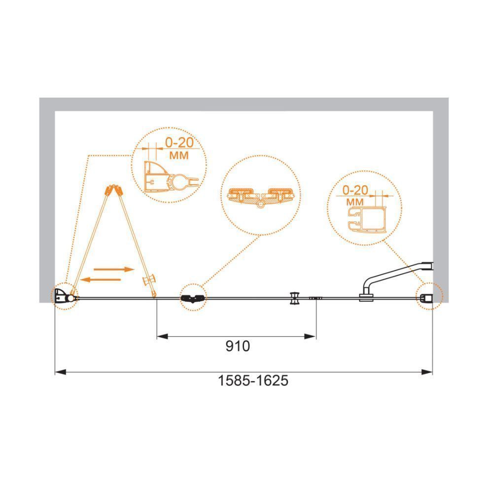 —Душевая дверь Cezares ELENA ELENA-W-BS-13-60+50/50-C-Cr 160х195 стекло прозрачное профиль хром
