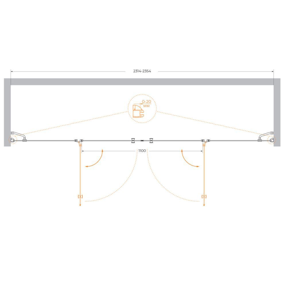—Душевая дверь Cezares VERONA VERONA-W-B-22-240-C-Cr 240х195 стекло прозрачное профиль хром
