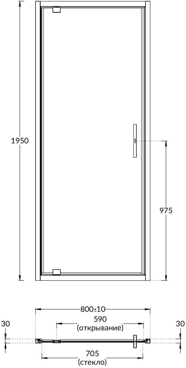 —Душевая дверь Kerama Marazzi VETRO VE.80.PD.BLK.M 80х195 стекло прозрачное профиль черный