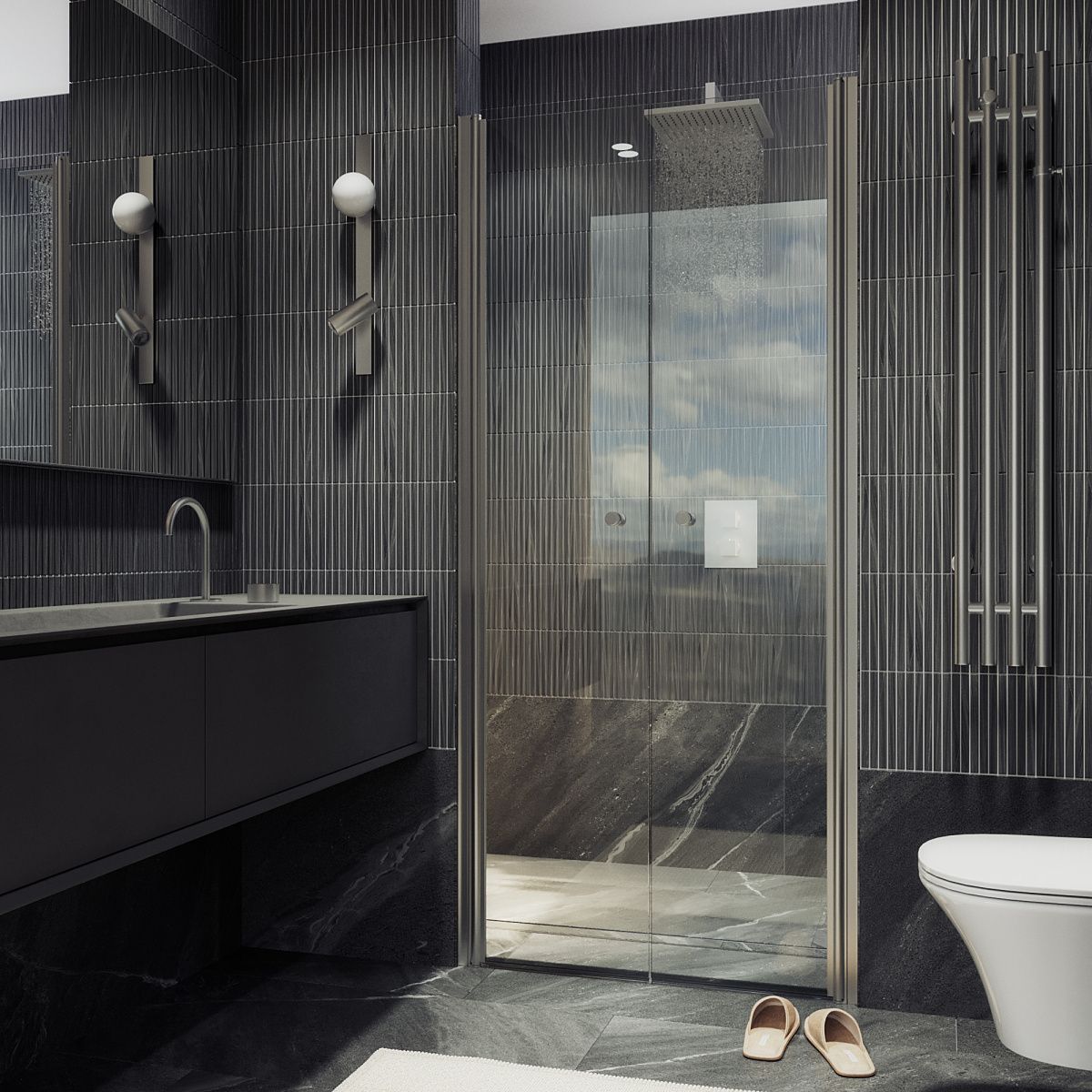 Стеклянная двустворчатая дверь на монопетлях - это стильный и современный элемент интерьера для ванной комнаты. Она изготовлена из прочного закаленного стекла, что обеспечивает ей долговечность и надежность. Монопетли позволяют створки плавно открываться и закрываться для удобства использования.