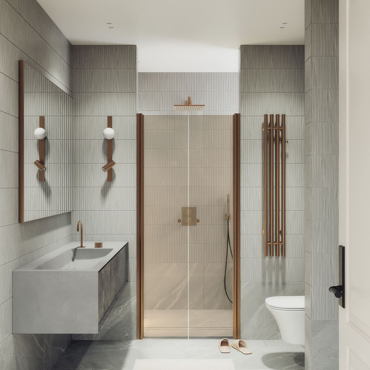 Стеклянная двустворчатая дверь на монопетлях - это стильный и современный элемент интерьера для ванной комнаты. Она изготовлена из прочного закаленного стекла, что обеспечивает ей долговечность и надежность. Монопетли позволяют створки плавно открываться и закрываться для удобства использования.