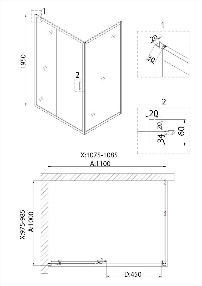 —Душевая дверь Niagara Nova NG-62-11A 110х195 стекло прозрачное профиль хром