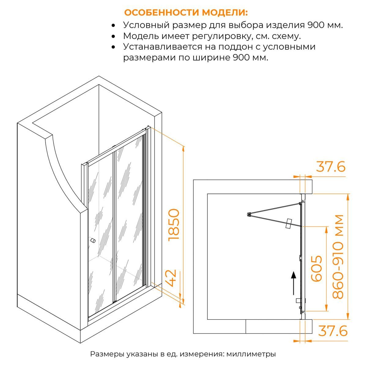 Регулируемый профиль позволяет адаптировать душ под конкретное пространство. Это обеспечивает идеальную посадку и бесшовную установку. Система роликовых подшипников обеспечивает плавное и легкое открытие и закрытие двери, обеспечивая удобство принятия душа.