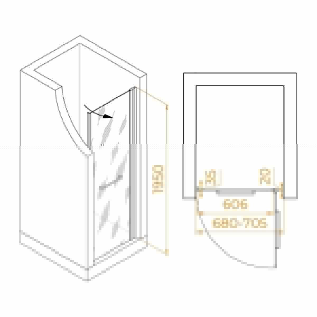 Душевая дверь распашная с маятниковой петлей (открытие только наружу). Маятниковые петли с функцией подъема двери. В комплекте нижняя пороговая планка. Стальная ручка - полотенцедержатель. Трап или поддон приобретается отдельно.