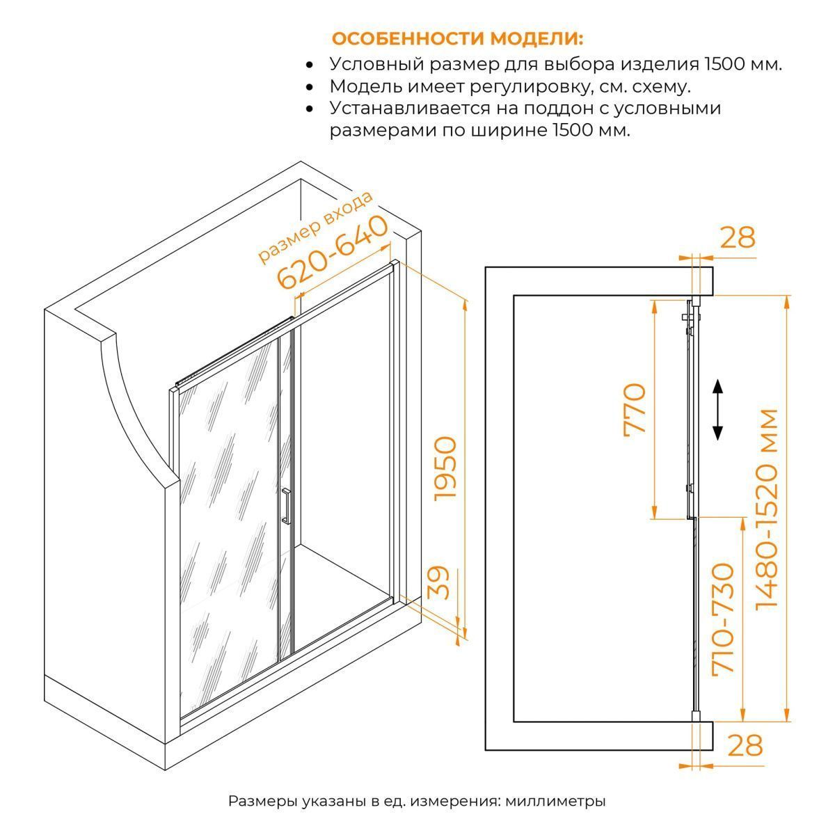 —Душевая дверь RGW Passage 030811415-14 150х195 стекло прозрачное профиль черный