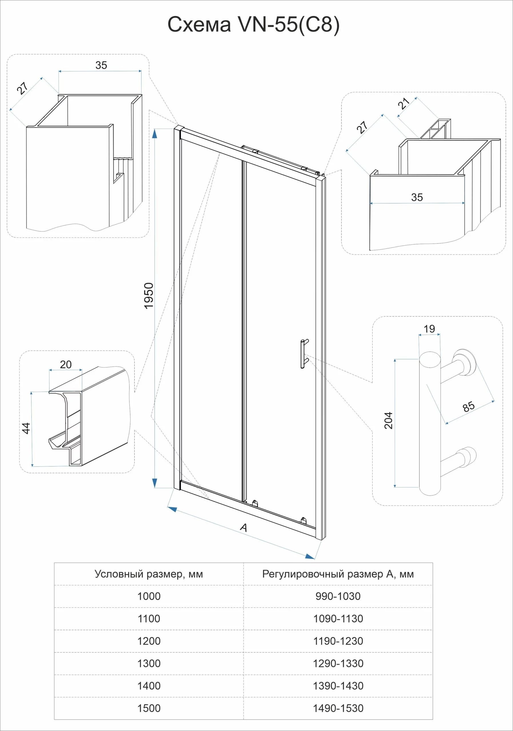 —Душевая дверь Veconi Vianno VN55M-150-07-C8 150х195 стекло матовое профиль хром