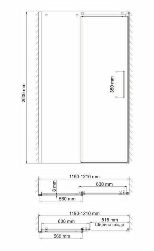 —Душевая дверь Wasserkraft 15R05 120х200 стекло прозрачное профиль хром
