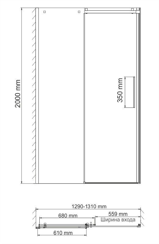 —Душевая дверь Wasserkraft 15R30 130х200 стекло прозрачное профиль хром