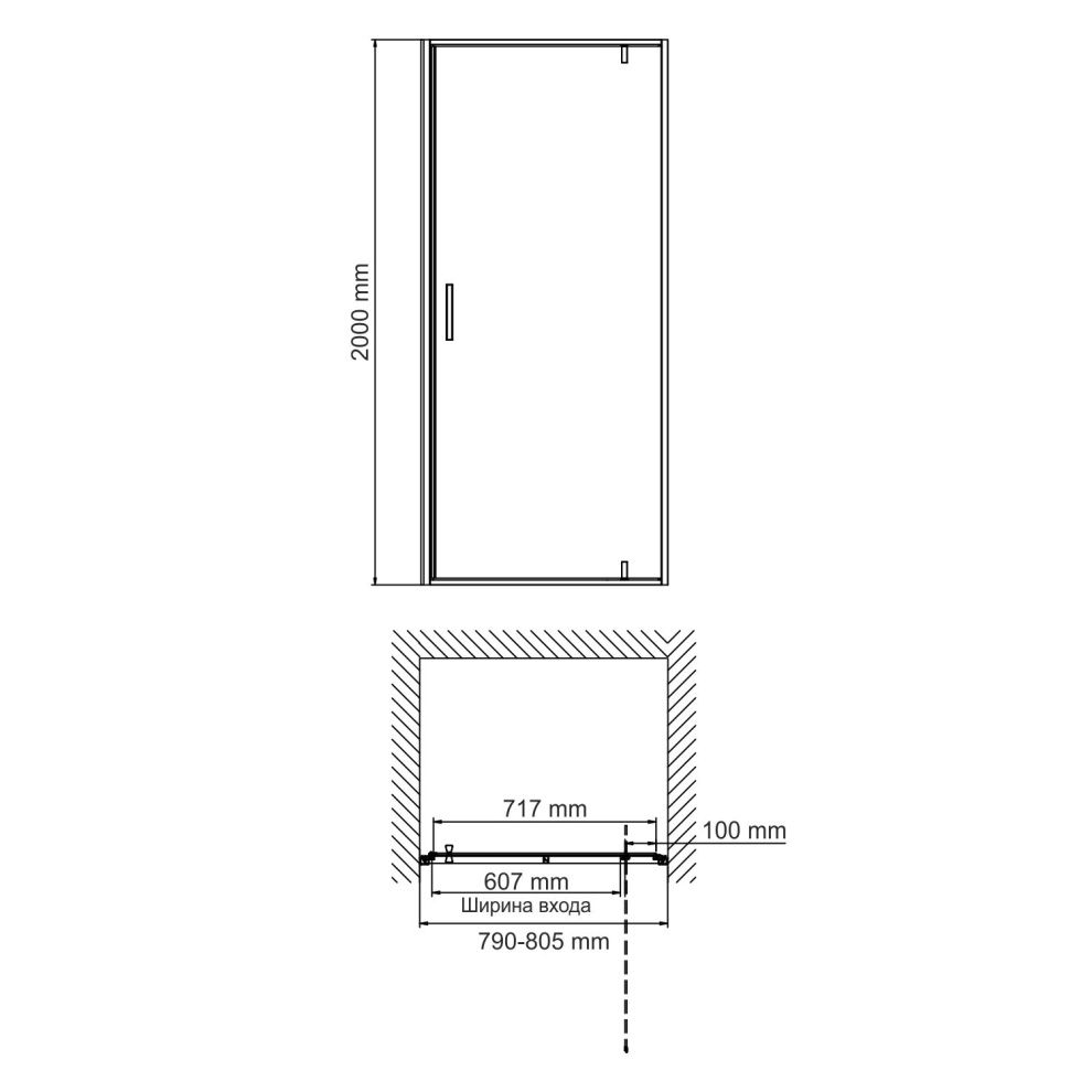 —Душевая дверь Wasserkraft Elbe 74P 74P27 80х200 стекло прозрачное профиль черный