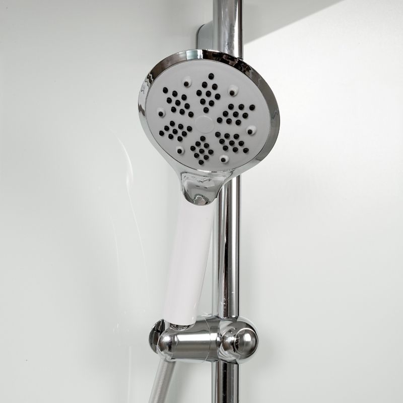 Стильная душевая кабина AvaCan EM 4511 R с электрикой сочетает в себе высокую функциональность, практичность и надежность. Для изготовления применяют безопасное закаленное стекло толщиной 5 мм, надежно фиксируемое алюминиевым профилем. Цвет профиля хром. В комплекте зеркало, сенсорный пульт управления, донный клапан (клик-клак), смеситель, тропический (верхний) душ, переключатель режимов, вентиляция, полочки, тропический (верхний) душ, радио.