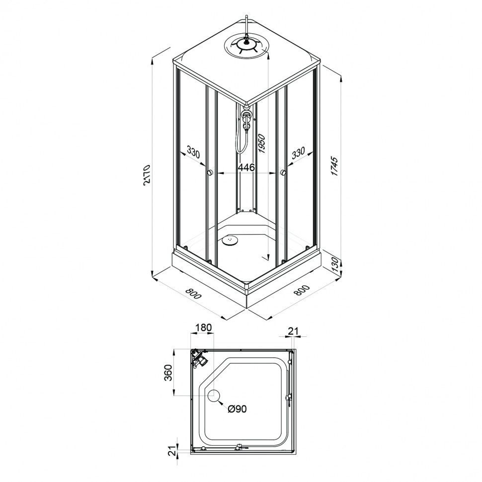 —Душевая кабина Тритон Вельвет-К Щ0000071050 80х80 квадратная с крышей ориентация универсальная