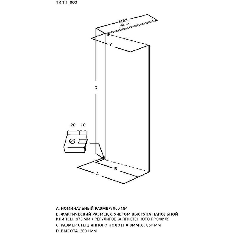 —Душевая перегородка Allen Brau Infinity 3.21010.BBA.T 90х200 стекло тонированное профиль черный