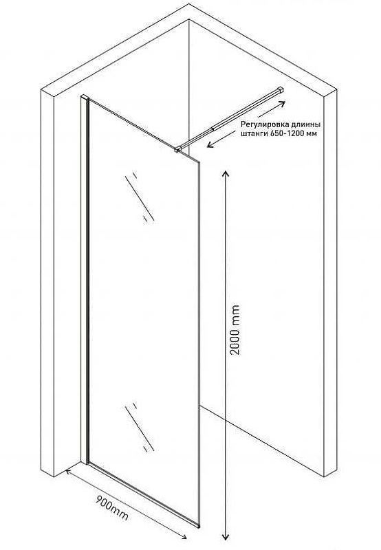 Душевая перегородка Berges SKY 064002 90х200 стекло прозрачное профиль хром