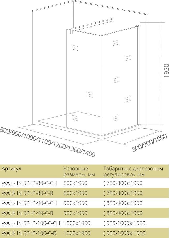 —Душевая перегородка Good Door WALK IN ВИ00018 80х195 стекло прозрачное профиль черный