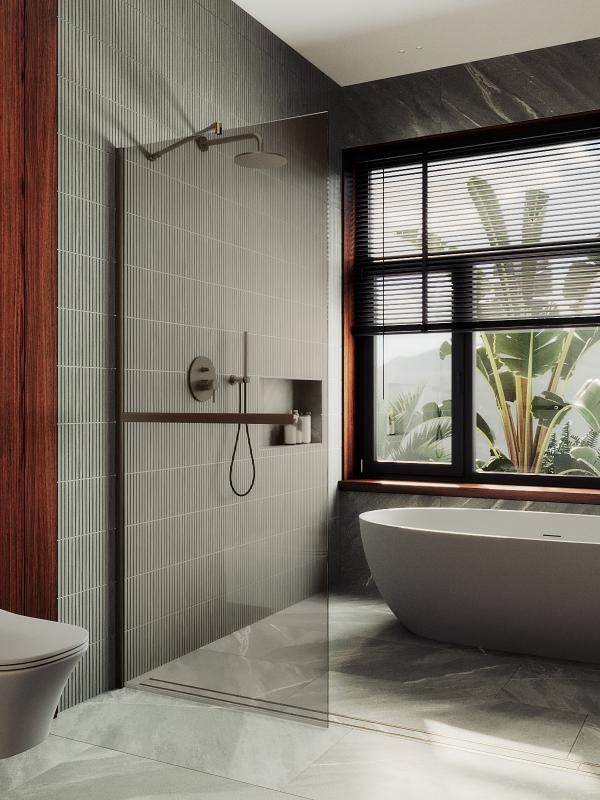 Душевая перегородка Maybah Glass MGD-727-2ш 80х195 стекло тонированное профиль бронза