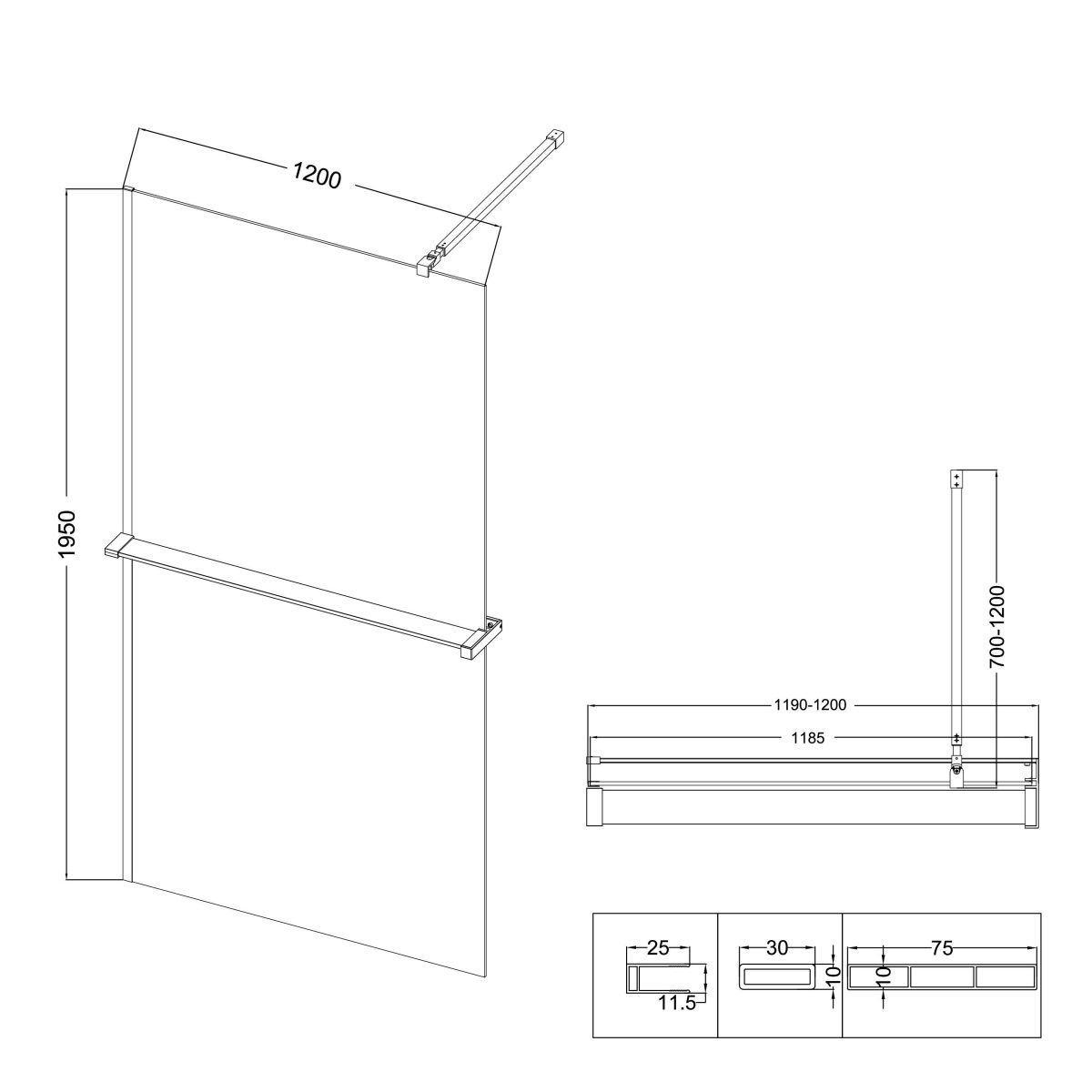 Перегородка, изготовленая из закаленного стекла толщиной 8 мм, соответствует высоким стандартам качества и надежности, что обеспечивает долговечность и безопасность ее использования. Телескопическая штанга с регулировкой от 700 до 1200 мм позволяет легко настроить перегородку под нужный размер душевого пространства, обеспечивая оптимальное прилегание к стенам и идеальную посадку.