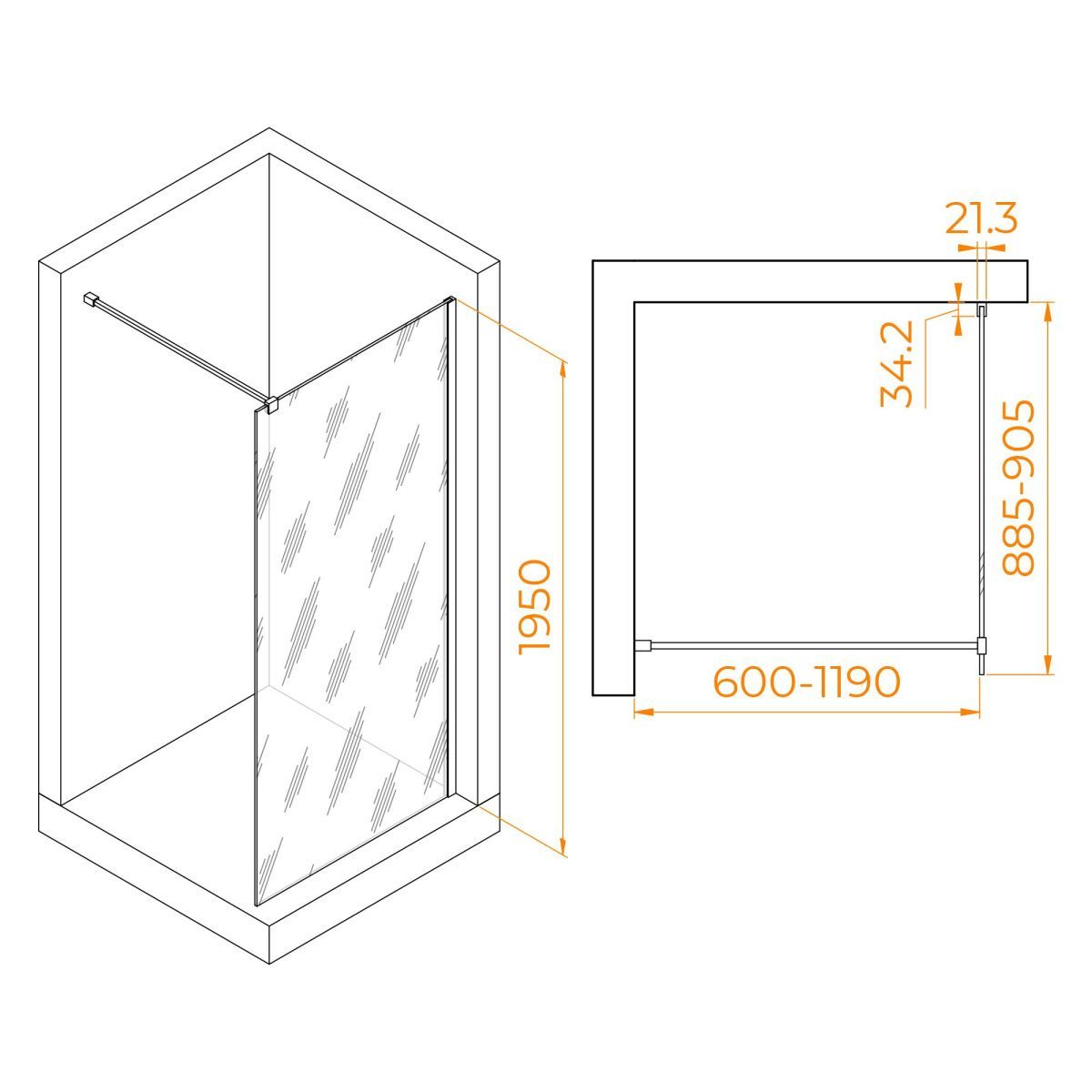 Перегородка изготовлена из закаленного стекла толщиной 10 мм, что обеспечивает надежность и долговечность изделия. Прозрачное стекло позволяет вам наслаждаться свежими ощущениями во время принятия душа, создавая визуальное пространство и эффект простора в ванной комнате. Благодаря анодированному алюминиевому профилю цвета хром, перегородка идеально сочетается со стилем вашей ванной комнаты и добавляет элегантность и современность в интерьер.