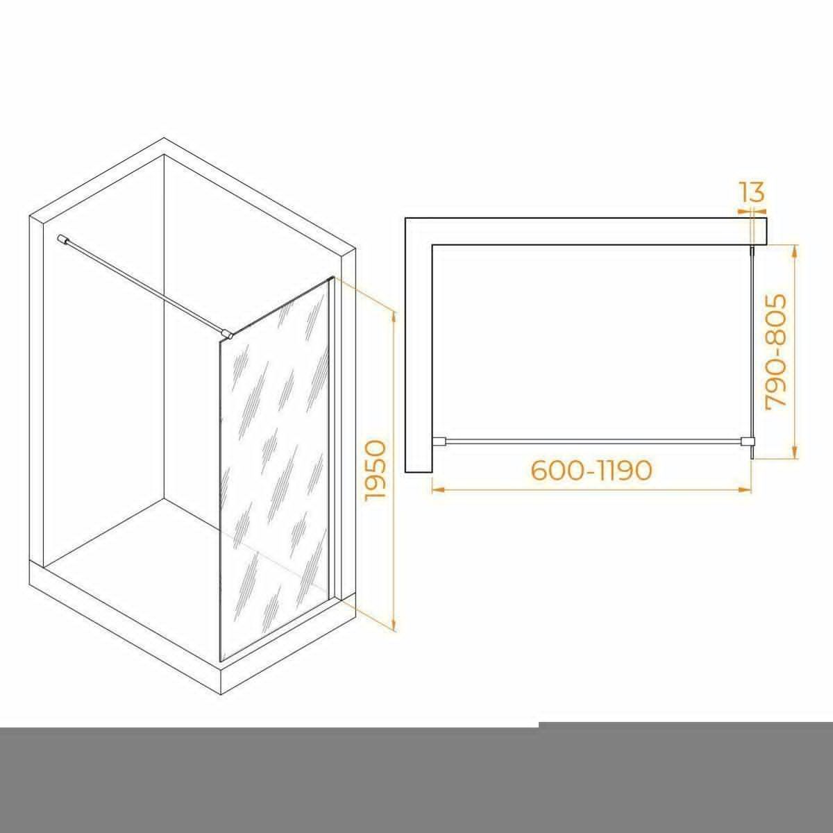 Высота перегородки для душа RGW WA-010 составляет 195 см, что обеспечивает комфортное использование для большинства людей и позволяет избежать протекания воды через край перегородки.