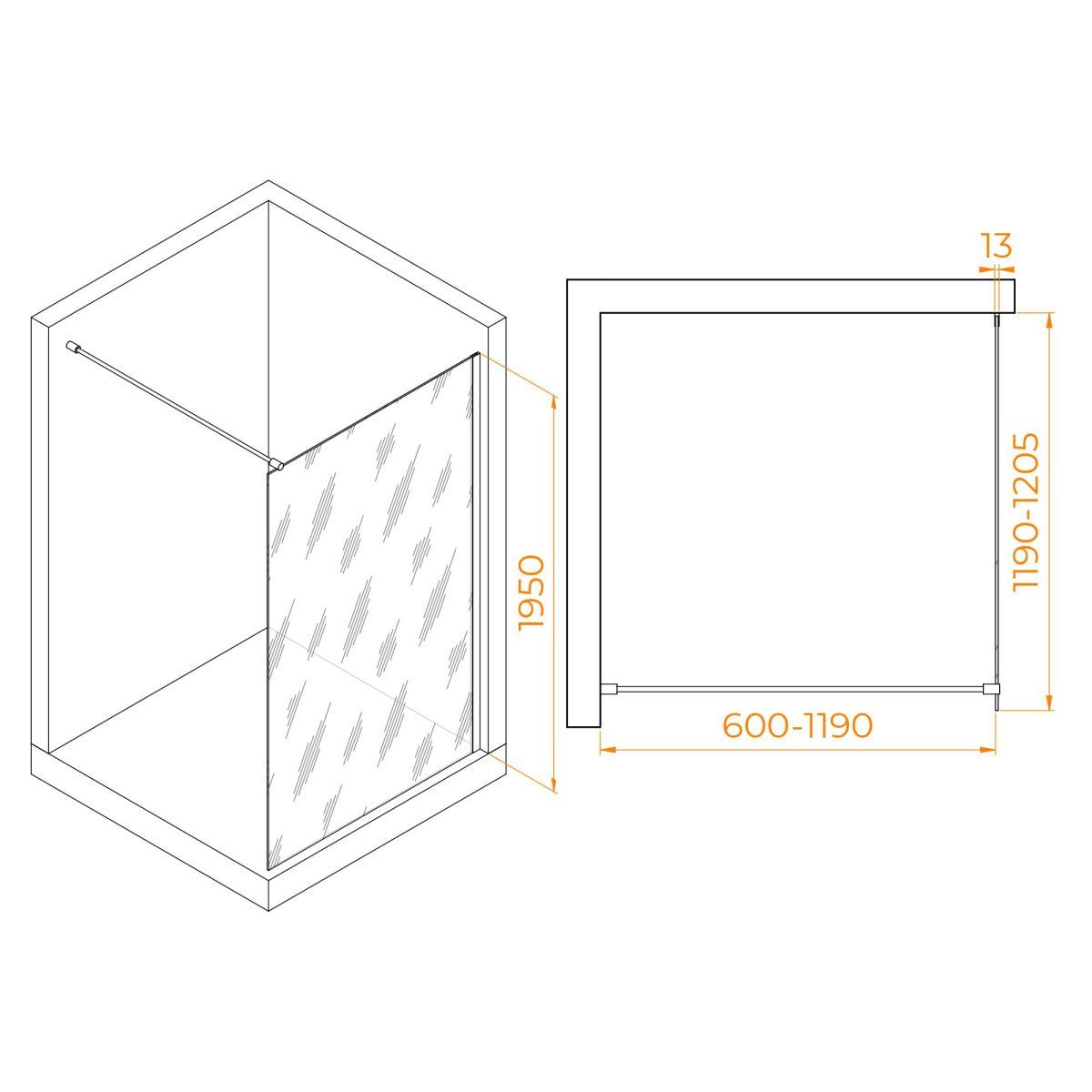 Высота перегородки для душа RGW WA-010 составляет 195 см, что обеспечивает комфортное использование для большинства людей и позволяет избежать протекания воды через край перегородки.