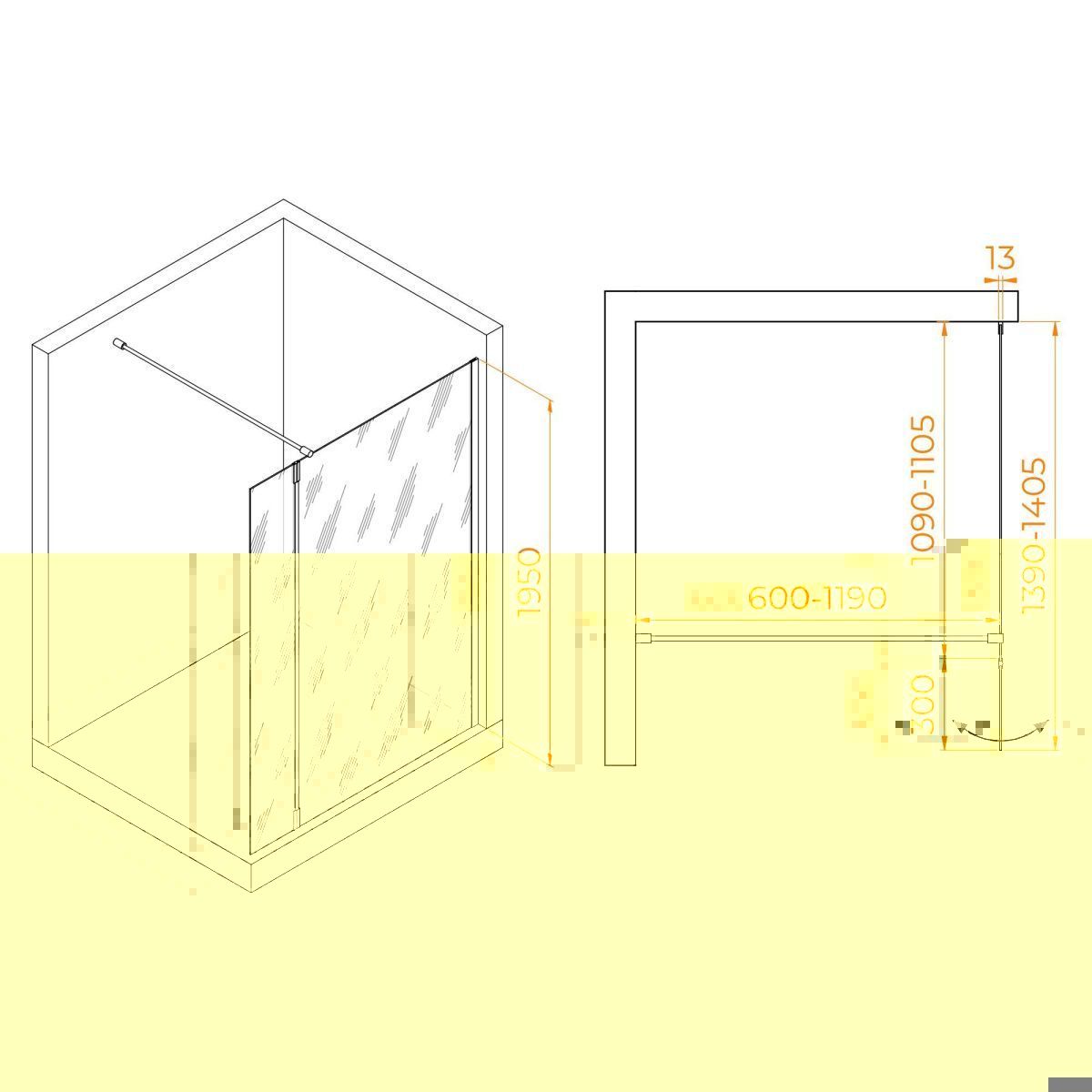 Душевая перегородка стационарная с поворотной маятниковой частью 300 мм