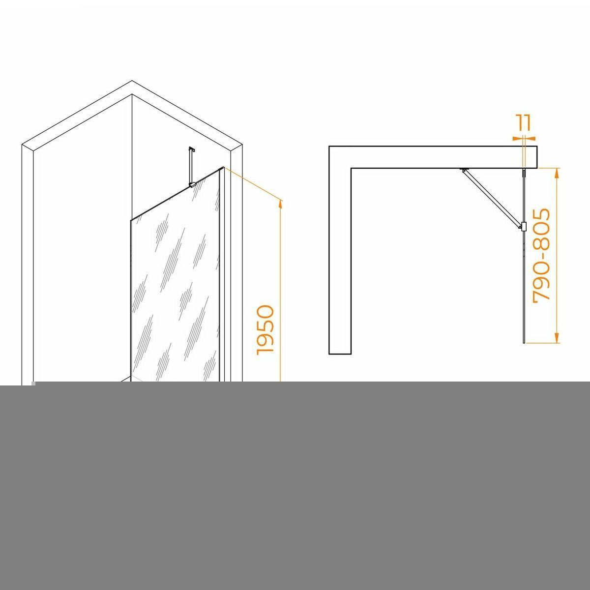 Высота перегородки составляет 195 см, что позволяет использовать данную конструкцию для большинства размеров ванной комнаты. Перегородка имеет класс герметичности 3, что обеспечивает полную защиту от проникновения воды.