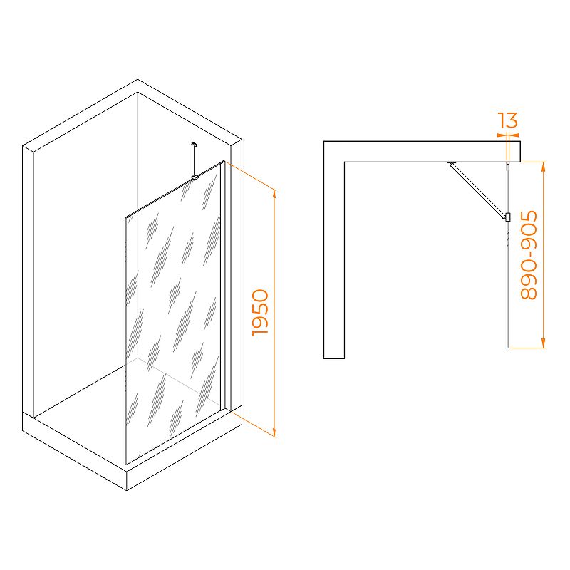 Высота перегородки составляет 195 см, что позволяет использовать ее в различных типах помещений. Благодаря классу герметичности 3, зона душа остается сухой и защищенной от воды, что является очень важным для комфортного использования.