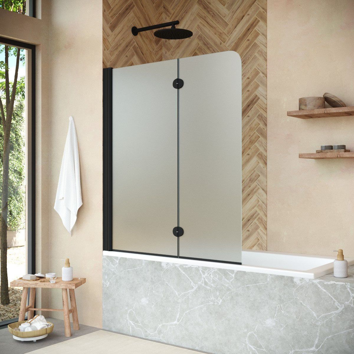 —Душевая шторка на ванну Vegas-Glass E2V+E2V NOVO E2V NOVO 120 02М 10 L 120х140 стекло матовое профиль черный ориентация левая