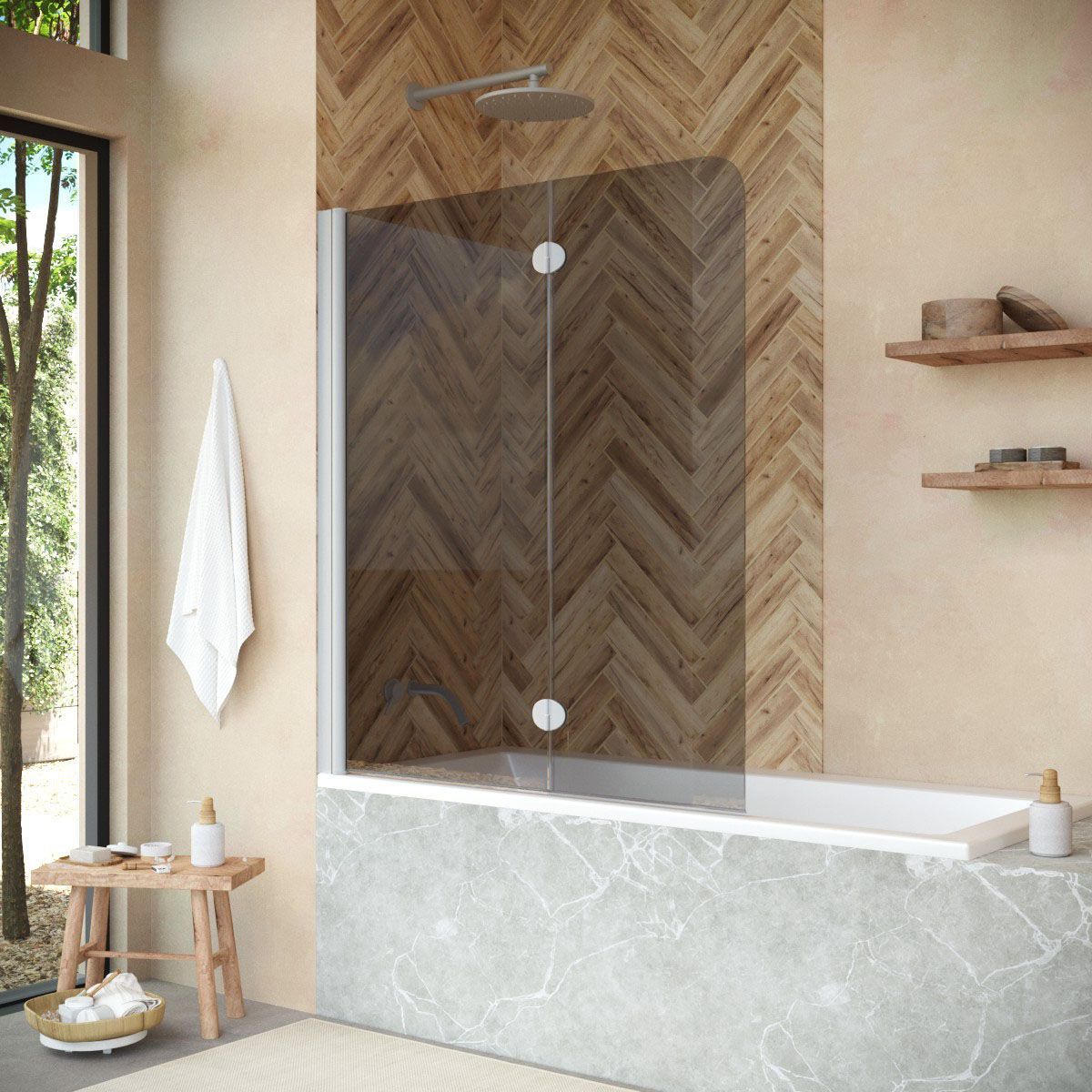 —Душевая шторка на ванну Vegas-Glass E2V+E2V NOVO E2V NOVO 120 07 07 L 120х140 стекло тонированное профиль хром ориентация левая