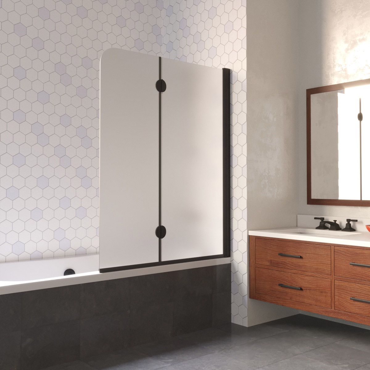 —Душевая шторка на ванну Vegas-Glass E2V LUX E2V LUX 120 02М 10 R 120х150 стекло матовое профиль черный ориентация правая
