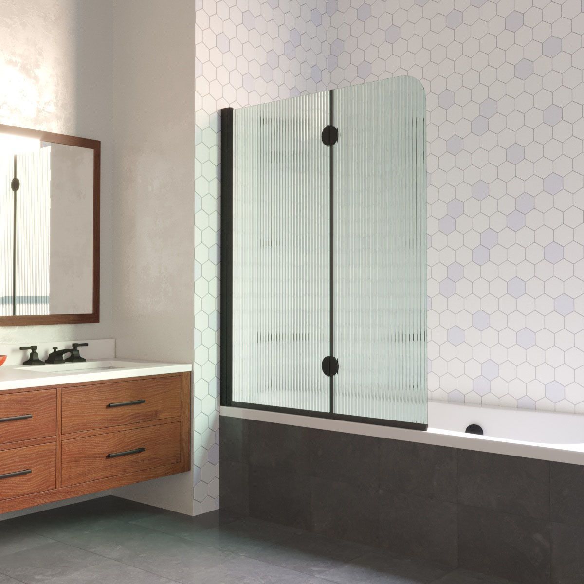 —Душевая шторка на ванну Vegas-Glass E2V LUX E2V LUX 120 02М Moru L 120х150 стекло рифленое профиль черный ориентация левая