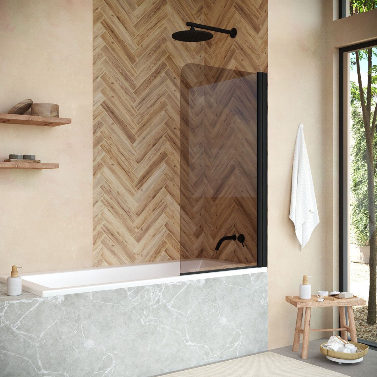 —Душевая шторка на ванну Vegas-Glass EV+EV NOVO EV NOVO 70 02М 05 70х140 стекло тонированное профиль черный ориентация универсальная